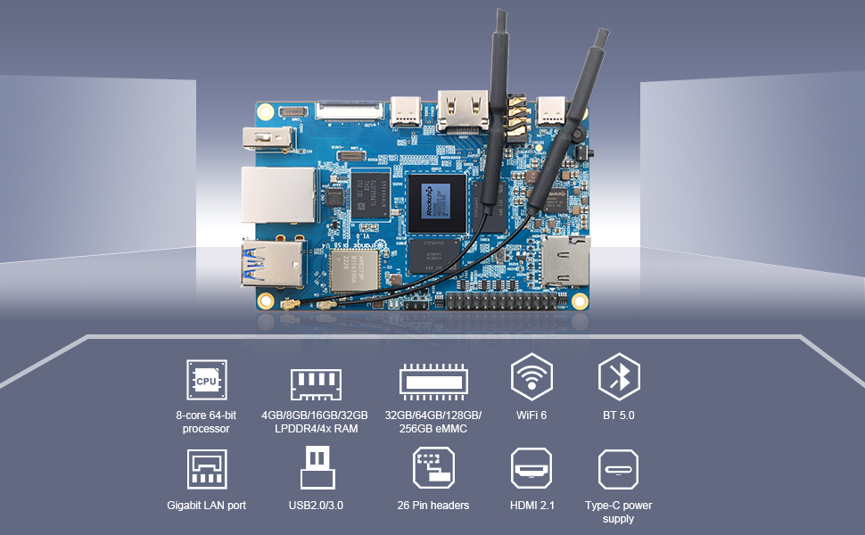 | Audio | CODEC: ES8388 / 3.5mm headphone jack audio input/output / Input: Onboard MIC / HDMI 2.1 eARC |