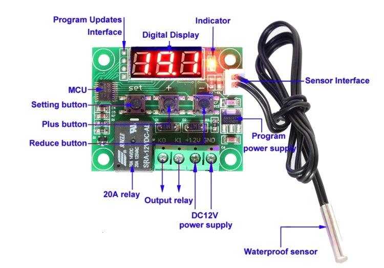 Bien que ce module dispose d’un microcontrôleur intégré, aucune connaissance en programmation n’est requise. 3 commutateurs tactiles permettent de configurer divers paramètres, y compris les températures de déclenchement marche et arrêt. Le relais embarqué peut commuter jusqu’à un maximum de 240V AC à 5A ou 14V DC à 10A.