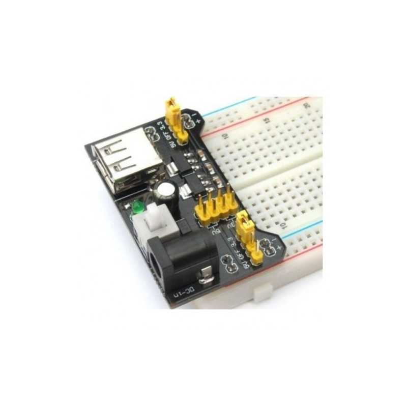 Le module peut également sortir 5V sur le connecteur USB ou entrer via le connecteur USB. C’est un produit incontournable pour les expérimentateurs qui doivent tester/prototyper des circuits électroniques sur la maquette.