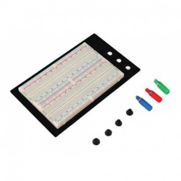 Plaque de connexion sans soudure 1660 points avec revêtement extérieur en ABS et 3 bornes de connexions.Permet de concevoir, développer et tester des circuits électroniques de façon plus rapide et plus facile avec une grande précision