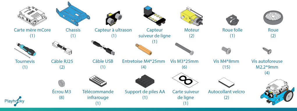 Le robot mBot est livré en kit et doit être monté, ce qui ne pose pas vraiment de problème ! L’assemblage ne requiert aucune compétences particulières. Il prend 20 à 30 minutes. il peut être réalisé par les élèves.